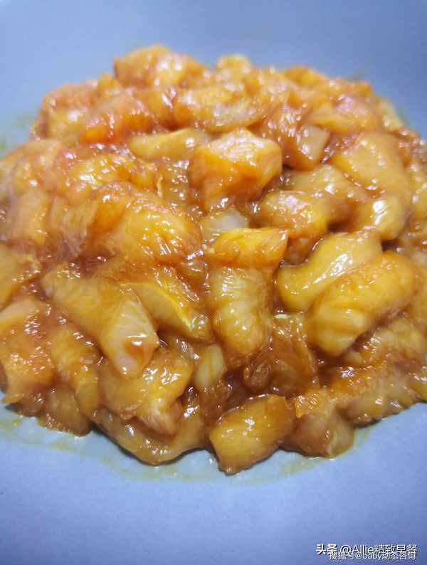 豆类,鸡胸肉。【实践】鸡胸肉洗净切丁,加盐、生抽、老抽少许、原藕粉或生粉少许、食用油几滴,反复搅拌至成浆状,腌制20分钟到30分钟。有些朋友不明白尺码是什么。答:搅拌,搅拌,直到鸡肉变粘是上浆。见下图,这种腌制方法同样适用于牛肉和猪肉。