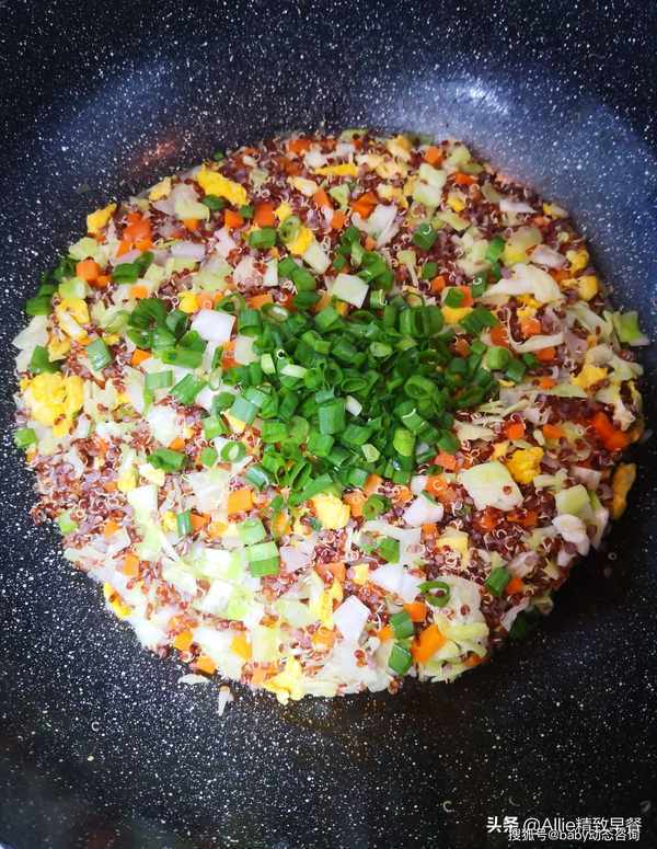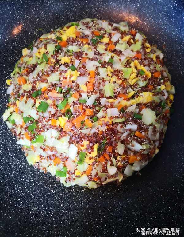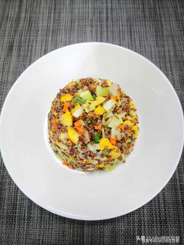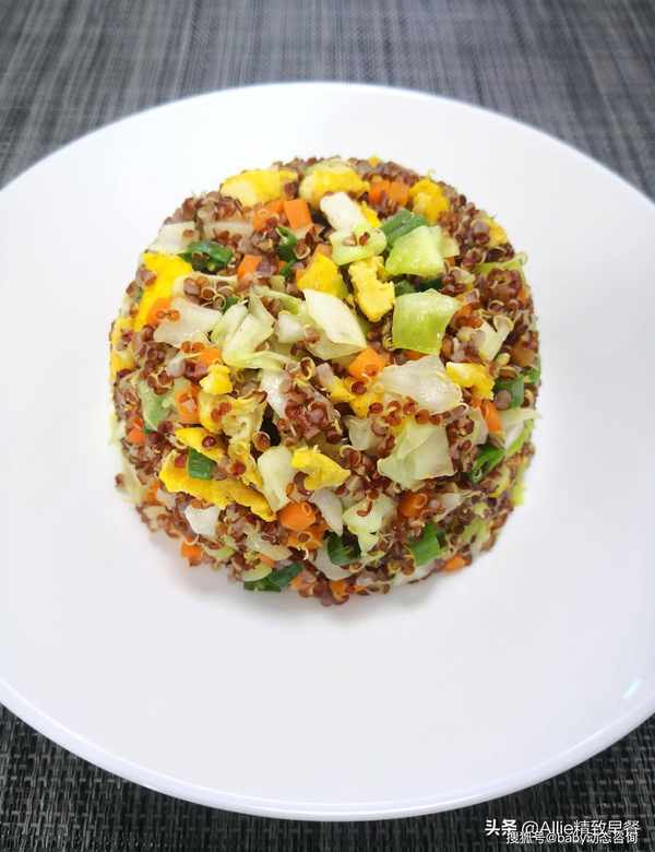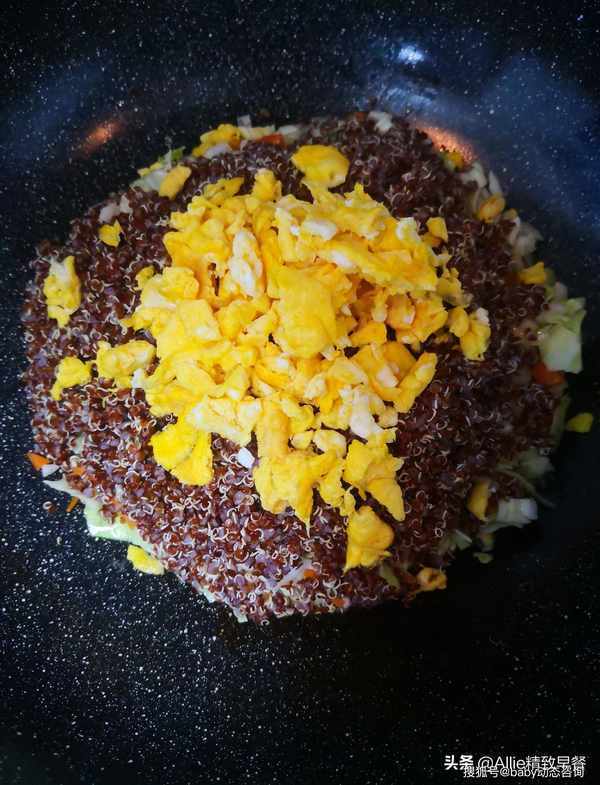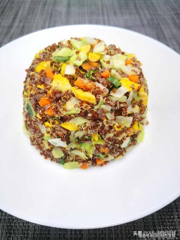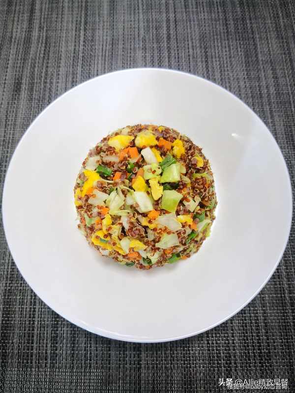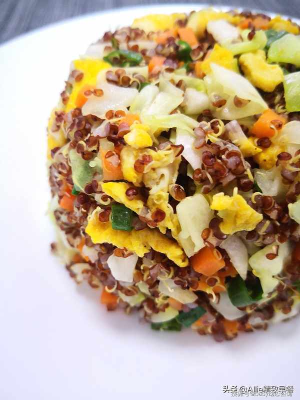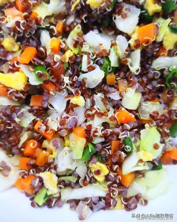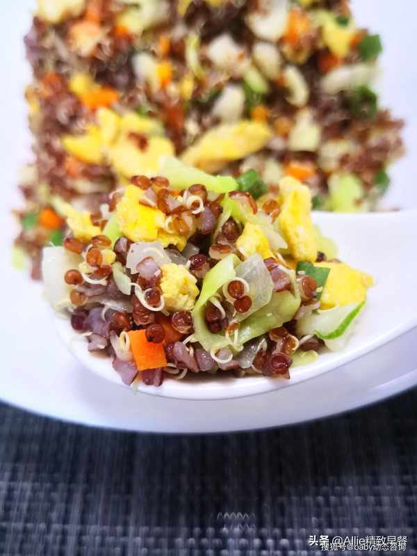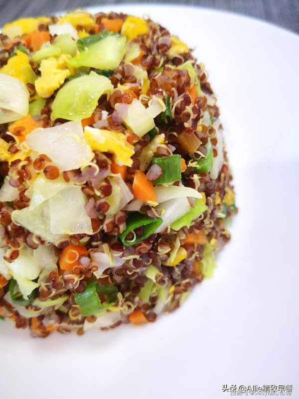 如何做蛋炒饭?没有米粒的减脂过程中这样吃,你离成功不远了大家好,我是艾莉。美好的一天从营养丰富的早餐开始。吃一顿丰盛的早餐,一整天都会精力充沛。早餐吃好,午餐吃饱,晚餐少吃,低脂、低盐、清淡饮食。这是我多年的习惯。希望和朋友们一起吃得健康、美丽、健美!蛋炒饭很熟悉吧?没有一粒米的蛋炒饭你吃过吗?今天我要用同样营养价值高的谷物来做鸡蛋炒饭,这粒谷物就是藜麦,藜麦含有多种人体必需的氨基酸,常食好处多多。煮熟的藜麦体积会膨胀3-4倍,所以每次只需要一点点藜麦就可以吃饱。此外,藜麦纤维含量高,饱腹感强。它在饮食管理上很有用处,所以特别适合作为减脂期间的主食。
