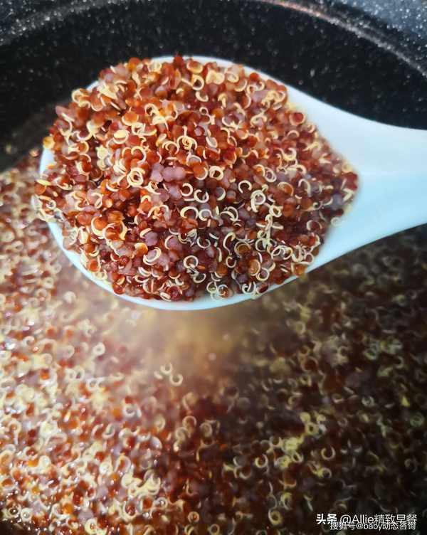 烹饪时间是指示性的。主要看病情。煮至藜麦有小白牙,口感软硬适中。