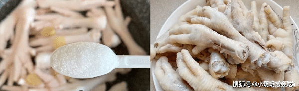 洗干净的鸡爪冷水下锅,加入姜片,葱结,料酒,一勺盐,煮30分钟,中途如果有泡泡,就撇去,那是血沫,煮好后捞出用清水洗干净备用。