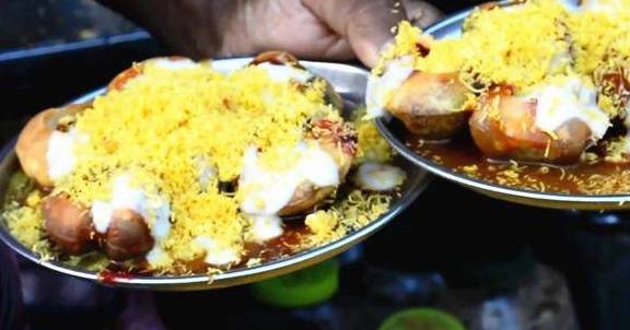 这样一碗小吃,一盘子里有6个这样的空心小饼,里面装满了咖喱酸奶和小米,味道非常好,一份才45卢比,换算成人民币才5块钱左右,价格是挺实惠的,而且味道也是美味无比的!这样的印度小吃,你想不想来上一盘?