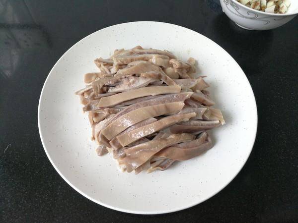 7.把炒过的配料、酱汁淋在猪肚丝里,即可食用