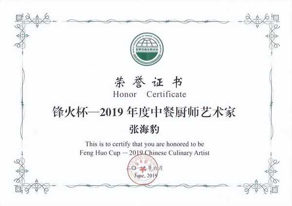 张海豹在川菜烹饪领域荣誉满满。2009年,他获得中国烹饪名师的称号,随后在2018年成为中国烹饪大师,同年,又获称天府杯-世界川菜烹饪名厨的称号。2019年的烽火杯上,张海豹还获得了中餐厨师艺术家称号。