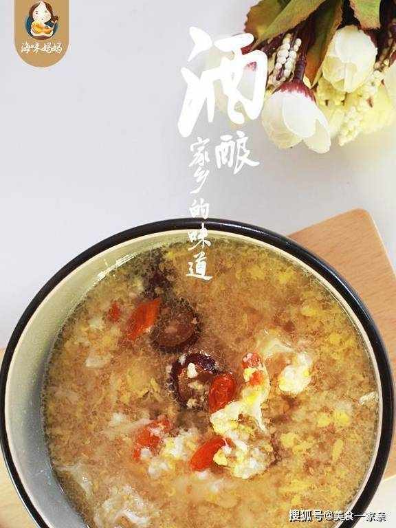 -煮酒酿红枣鸡蛋汤的操作很简单。先洗干净锅,倒入适量的清水煮开,加入酒酿,枸杞和红枣煮开,然后调至小火,最后打入鸡蛋,用筷子往同一个方向均匀搅拌,让蛋花松开,最后加入适量的白糖和倒入少许的花生油提香即可。