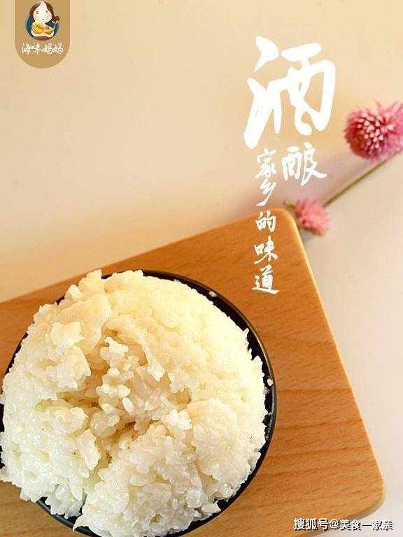 -这个酒酿是自己提前酿好,制作的方法简单,首先我们需要用到做酒酿的酒曲,这是用于发酵。先煮好糯米饭(记得是糯米哦),等煮好的糯米温度降到30度左右,撒入甜酒曲,再倒入少许的凉开水,在中间挖个小眼,然后密封起来,2天后就可以食用了。