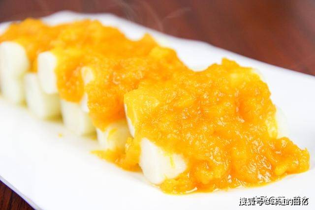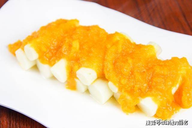 今天第一道菜名金汤山药,是个上补之菜。该菜用山药南瓜,蒸后料制,再结合而成。吃起来既有味道,又有营养。白黄色彩,恰如金银珍馐,观之可爱,入口想化。