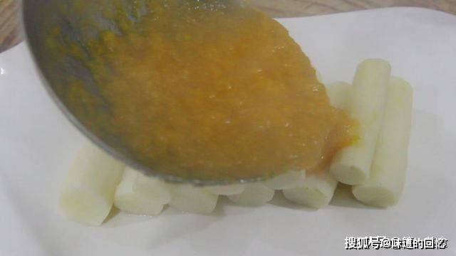 最后把南瓜汤汁浇在山药上。