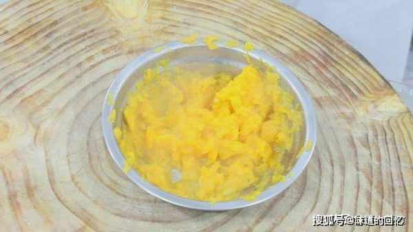 把蒸好的南瓜用勺子按压成泥。