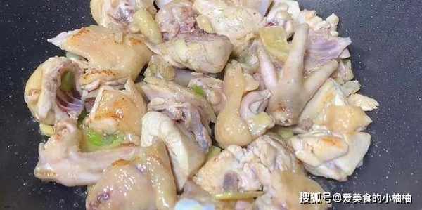 5.倒入鸡肉翻炒,外皮炒至微微焦黄。