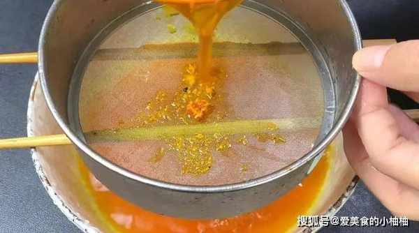 5.黄栀子水泡好之后,用滤网过滤出渣子。