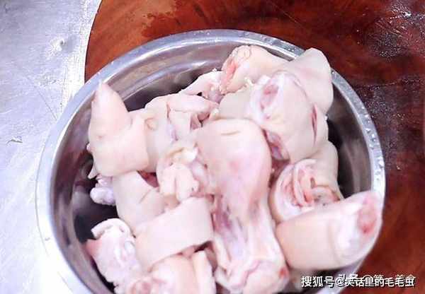 ,把上面残留的猪毛刮干净,把猪蹄剁成均匀的小块。