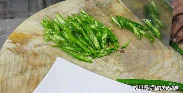 1.准备青椒一把,洗净后,用刀斜切成辣椒圈。