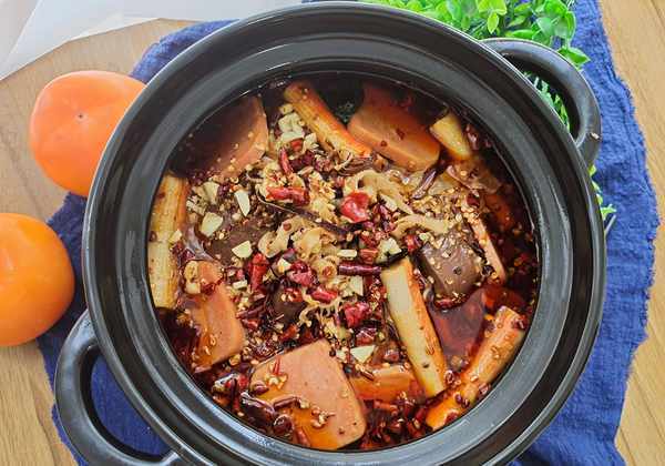 2、准备一些花椒和干红辣椒,放入油锅中用小火翻炒至花椒香,待辣椒表面出油时即可关火,倒入拿出来放凉,然后用刀切碎。3、锅内倒入油,放入切好的葱姜蒜爆香,再加入一小块红油火锅料和2勺郫县豆瓣酱,加水烧开。