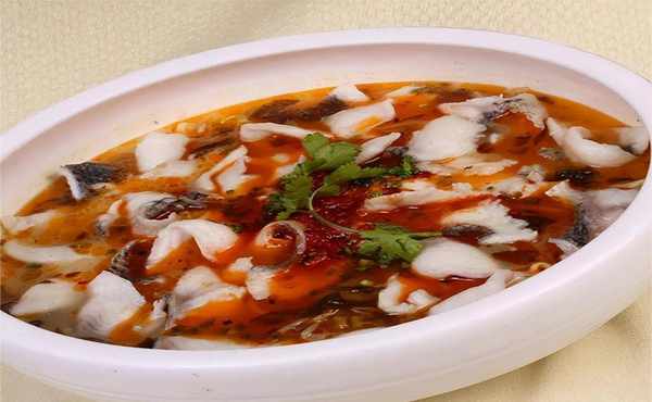 这道菜是将泡姜、泡萝卜和熊椒打成泥,然后与高汤、鱼汤等一起煮,再加入水煮鱼片。把泡菜泥搅拌到汤里。光滑的。