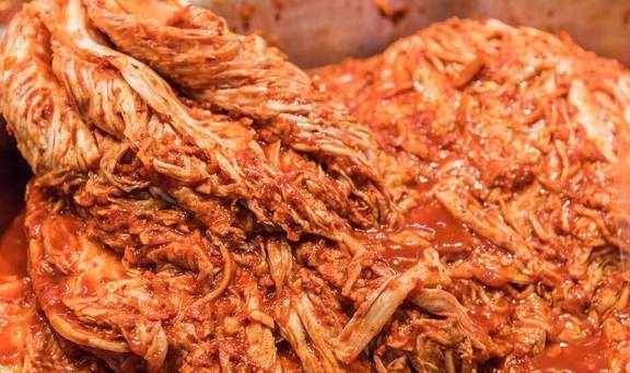 想吃辣白菜不用买,分享简单详细做法,干净又卫生,香辣又爽脆辣白菜,是一种发酵类的美食,深受众人的喜爱,尤其是在东北特别受欢迎,去外面吃饭的时候,也经常看到有些店里,把辣白菜当成一种小配菜,免费赠送给客人们。虽然看上去平平无奇,但是吃着真过瘾,第一次吃就把我迷住了。现在天气冷了,东北菜市场上卖辣白菜的好多,外面的温度零下,相当于一个冰箱了,也放不坏。但是我总感觉这样的辣白菜,不怎么健康,卫生条件实在不敢恭维,吃一次两次的还行,但是吃多了肯定是不可取的。想吃辣白菜不用买,自己完全可以在家做,也不用想的那么困难,我有一个超级简单的方法。接下来,我要给大家分享简单详细的做法,这样做出来,干净又卫生,香辣又过瘾,大人孩子都爱吃。【腌辣白菜】配方:大白菜2颗、葱姜蒜、苹果、鱼露、盐、白糖、糯米、粗辣椒面、细辣椒面、清水1、我们准备2颗大白菜,将其外面的烂叶子去掉,然后一切四半,在每一层里面,都均匀撒上适量的盐,腌制一个晚上,直至出水为止。