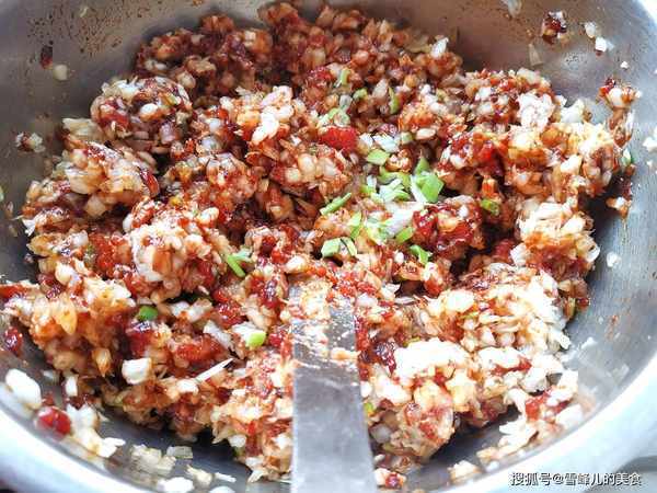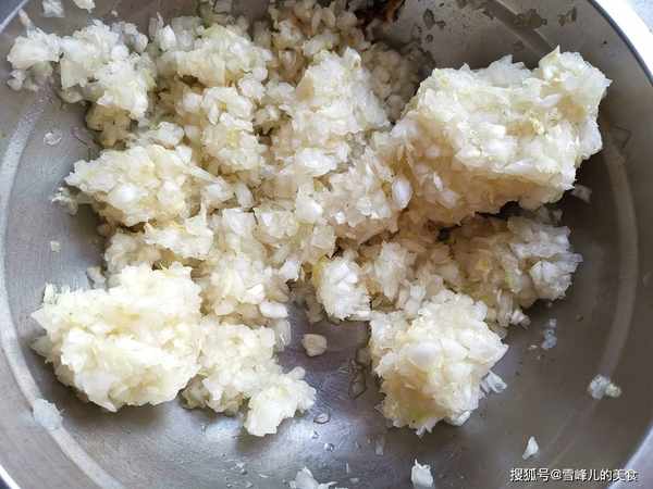 第一步:白菜含水量很大,做馅就要在剁馅的时候放入少许的盐,腌制出水后,用手捏去多余的水分,放入盆中。这一步不能少,这样做不但可以去除白菜中的水分还可以去除白菜中的菜味。