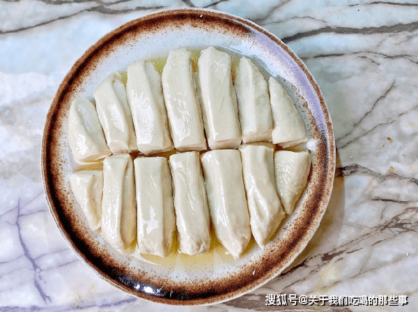 1、面粉加入食盐、温水,和成光滑偏硬的面团,盖上盖子醒面半小时,再用手揉10分钟,擀成1厘米厚的面饼,用刀切成宽面块,面块表面刷上一层油,放在盘子里码好,静置2小时。
