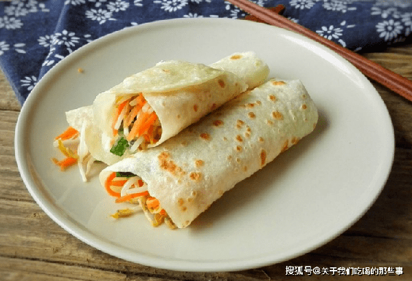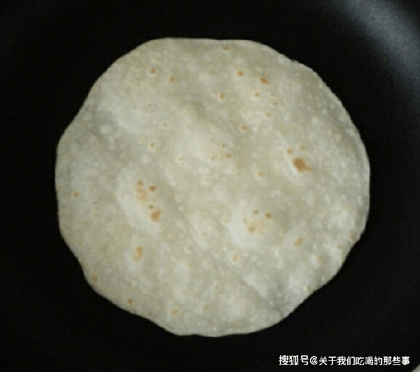 2、醒好的面团揉一揉,搓成长条,切成小剂子,擀成巴掌大的圆形面皮。平底锅不放油,烧热后放入面皮,小火烙至两面金黄即可盛出,春饼就做好了。