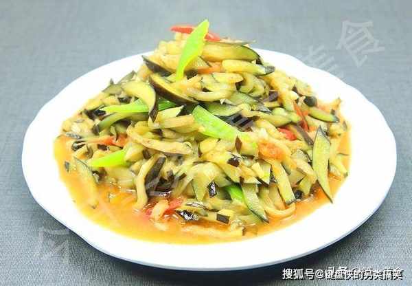 ,让调料更好地吸附在茄子表面,翻匀以后即可出锅,一道营养美味的蒜蓉炒茄丝就做好了。