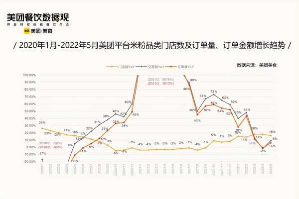 天时,是小家庭、单身化、生活快节奏,以及疫情培养出的消费习惯。中国烹饪协会联合美团发布的《2022快餐品类分析报告》提到,米粉品类餐饮门店在美团平台的总数截至2022年5月达32.87万家,同比增长26.33%,2021年主要品类中订单量占比排名TOP4,同比增长30.6%可为佐证。