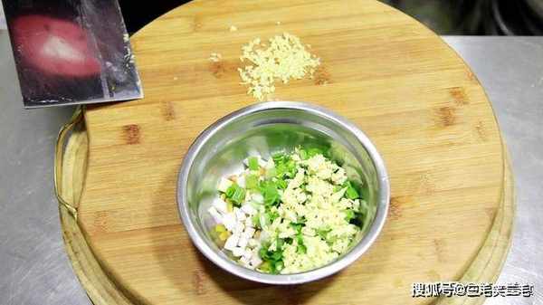准备青椒半个,去籽后切碎。洋葱半个,也切成小粒,小葱一根和大蒜几粒,排散切碎,外加生姜一块,切成姜末,全部放在一起备用