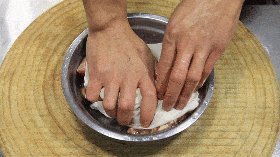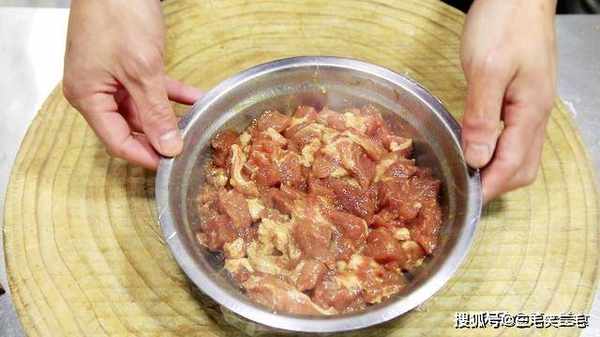 先准备猪肉300克左右,切成一厘米左右的肉丁,用清水彻底冲洗干净。清洗完之后记得要擦干肉丁上的水分,不然腌制的时候水分既会冲淡料汁,也会使得肉丁不好入味。