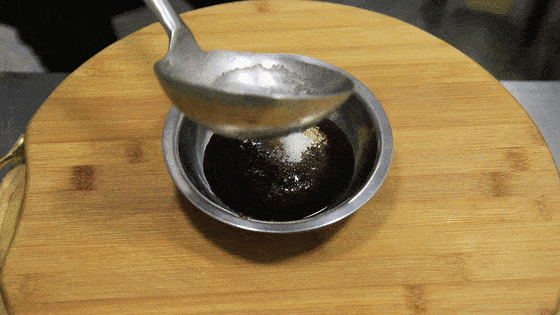 取一只碗,放入黑椒汁20克,香油5克、料酒5克去腥,生抽5克以及食盐少许,再加鸡精1克、白糖2克提鲜,加入适量温开水,搅拌化开调料就可以了。