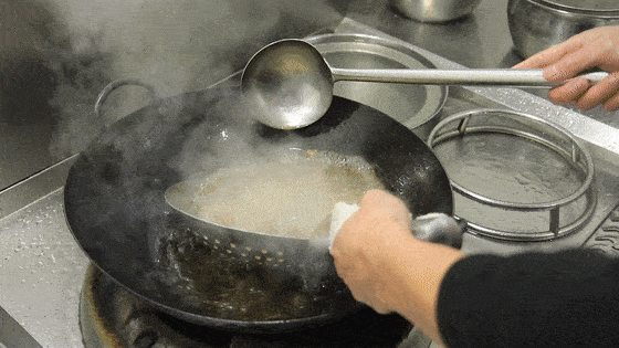 食材全部准备好以后,我们要先把肉丁炸一下。锅内烧油,油温五成热时把腌好的肉丁依次撒入锅中,为了防止肉丁粘在一起要不停的搅动,小火2分钟,炸至肉丁表面呈金黄色时捞出控油。
