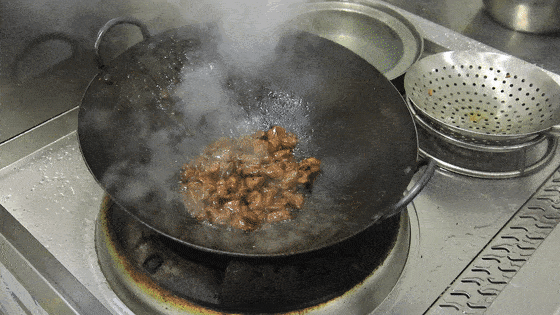 锅内留下底油,倒入我们第四步里调好的碗料,先炒出黑椒汁的香味。等料汁烧开以后把肉丁倒入锅中,开小火再翻炒2分钟左右,让肉丁充分吸收料汁入味。等料汁收浓以后,倒入第三步时切好的小料转大火,快速翻炒均匀,再淋入少许明油,提亮色泽翻匀后即可出锅装盘。