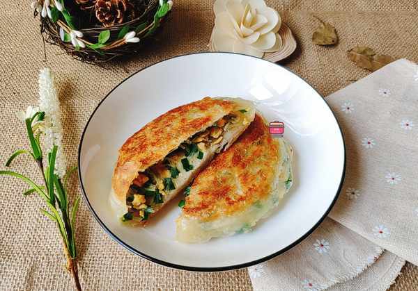 韭菜、鸡蛋、绿豆粉丝、虾皮、白胡椒、十三香、盐、糖、手抓饼