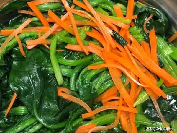 1、菠菜含有草酸,吃之前一定要焯水,把菠菜摘洗干净,起锅烧水,水开放入菠菜、胡萝卜,焯烫一分钟左右,捞出放入凉水中,捞出控干水分,把菠菜切段。