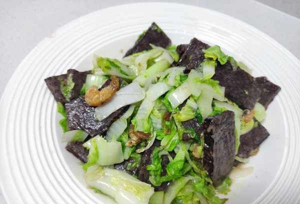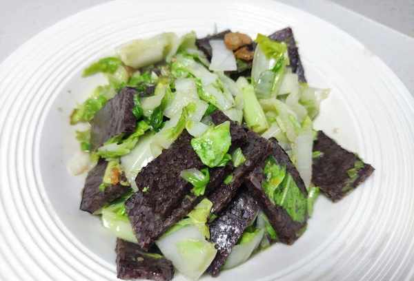 1.血年糕适合搭配绿色蔬菜,尤其是卷心菜。因为白菜里的水分很高,煮的时候水分被血饼吸收了,煮出来的味道更好;