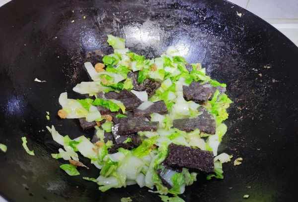 白菜炒饭很快就做好了。美味又营养。米血糕富含铁质,也是人体的“破坏者”。它可以排出我们体内的杂质,是补血的佳品。