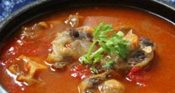 第四步,西红柿切块,另取一锅,锅里放入黄油,等到黄油融化后,加入少许面粉,搅拌粘稠后,加入西红柿。再把煮好的牛尾放到锅里,同时加入少许番茄酱,盐,鸡精,白胡椒粉调味,最后出锅就行了。
