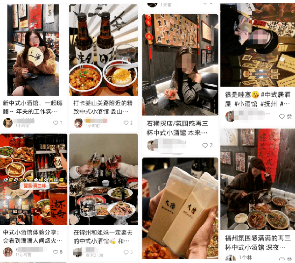 最近,类似这样探店中式小酒馆的短视频在抖音以及小红书出现不少。