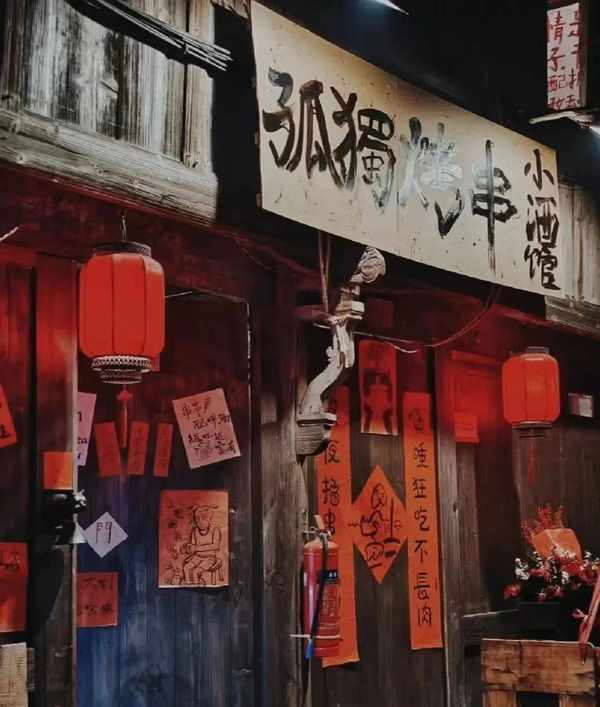 不过,也有一些新中式小酒馆在餐+酒模式上增加了其他个性特色。比如浙江就有一家孤独烤串小酒馆,在小酒馆基础上加入烤串档口,非常有意思。