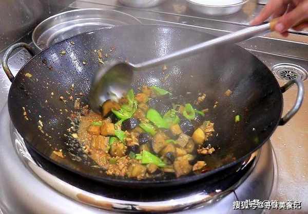 倒入茄子和青椒
