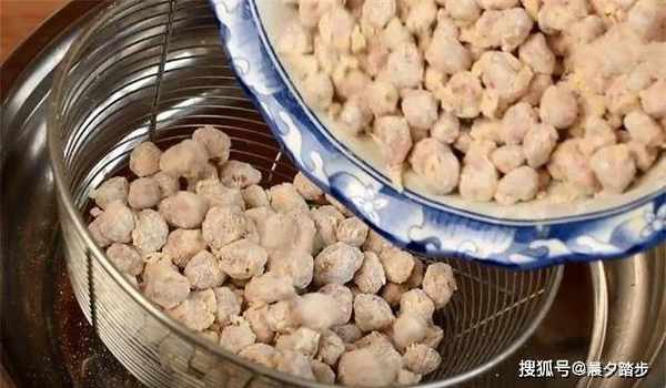 4.锅中加入食用油,油温升至50%,炸至金黄,捞出控油待用。