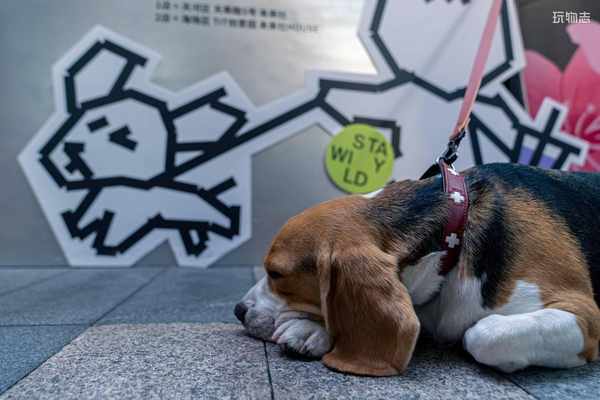 镇咖啡馆之宝「拿铁」逛得累了,旁若无人地睡在摊位前,引得路人纷纷侧目或者拍照。
