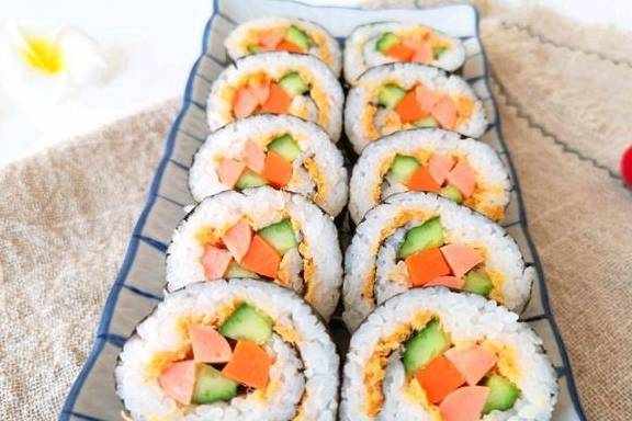 早起10分钟给孩子做肉松寿司卷,剩米饭也不用浪费了,孩子很喜欢吃不知道从什么时候开始,寿司已经成为了中国老百姓们心中常见的食物,其实他是一种日本的传统美食,早在古时期就有,最早是用盐和米腌制的咸鱼,后来演变成今日的寿司。日本习惯叫做寿司而传入到韩国,韩国民众称其为紫菜包饭。其实在我看来,传入到中国之后,寿司和紫菜包饭是两种极为相似的美食,不同的是食材的搭配而已。日本的寿司就仿佛与中国人的饺子,寿司在日本是非常受欢迎的,而最正宗的日本寿司,讲究的是食材的新鲜度,一般都是在食客面前制作,满足食物的最大新鲜程度,寿司传入中国之后,也根据了普通民众的口味和地域环境的影响演变出了不同味道,其实我认为不管正宗与否,只要适合自己的才是最美味的食物。今天就来教大家做家庭版的肉松寿司卷,给孩子当早餐特别合适,制作方法简单,早起10分钟就能完成这一份美味的寿司卷,剩米饭也不用浪费了,关键是孩子特别喜欢吃,再配上一杯热豆浆,早餐就搞定了,营养丰富,健康美味,快来学习吧。