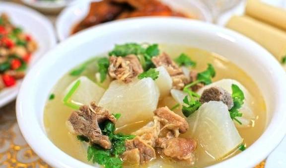 具体的做法:羊肉提前切块腌制,然后锅中加入少量油,将羊肉和大料同时炒制,加入清水,大火烧开转小火炖煮1个小时左右,最后放入白萝卜块继续熬煮10分钟就可以吃肉喝汤了。