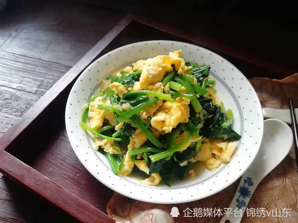 食材:200克菠菜、5个鸡蛋、150克温水、生抽、香醋、蚝油、蒜末、小米椒、香菜、花椒粉、香油、盐、糖