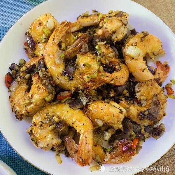 食材:大虾300克、葱2棵、盐1勺、辣椒2个