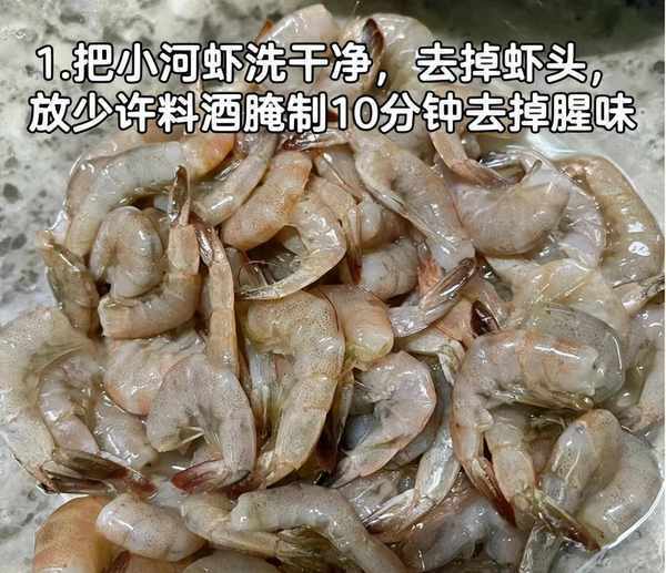 选择一些食材:买一小把嫩韭菜(韭菜是春天的时令蔬菜之一,叶子非常鲜嫩,被誉为“春天的第一鲜”,叶子含有粗大的纤维,闻起来很香,可以和荤素搭配,可以给菜肴增添风味),买小河虾350克左右(小河虾也是南方餐桌上最受欢迎的食物,钙和蛋白质含量高,平时可以多吃给孩子补身体用)、干辣椒少许、老姜几片、大蒜几头、色拉油少许、冷水少许、料酒适量、盐、鸡精少许,和其他调味品。
