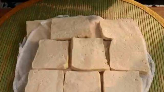 5.做好了,取出豆腐,铺在透气的工具上沥干水分。