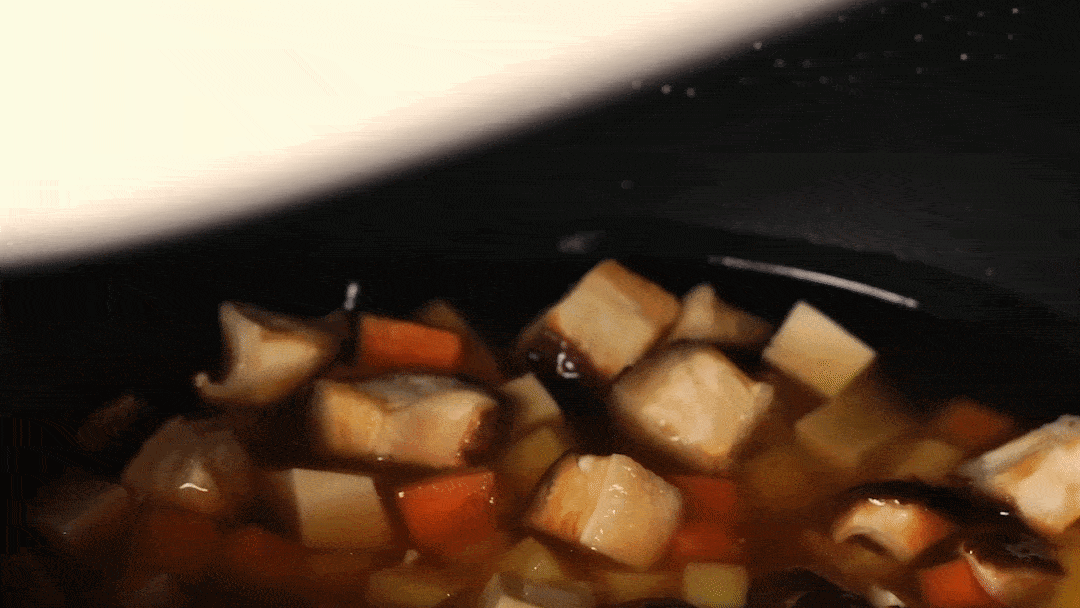 1.食材准备:把胡萝卜、土豆洗净去皮切丁,香菇切丁