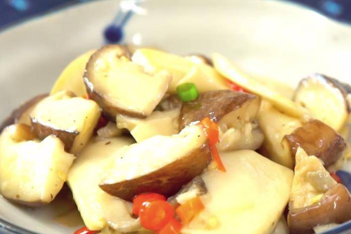 【原料】:蒜末30克,香菇8朵,平菇100克,平菇1个,葱少许,小米辣3条,料酒1勺,蚝油2勺,生抽1勺酱汁、白糖3粒、盐1克、鸡汤。
