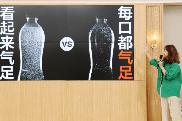 作为气泡水的布道者,元气森林从未止步于市场数据,一直关注消费者体验,“如何让气更足”是元气森林一直关注的产品突破点。不过,摆在研发团队面前的一道难题,就是“气泡逃逸”。注入饮料瓶的气体,由于晃动、包装材质、运输等各个原因,会想要提前“逃跑”,失去气泡的饮料喝起来就像是白开水兑白糖,缺少了一点刺激感。要想让气泡更持久,就需要一点技术加持。
