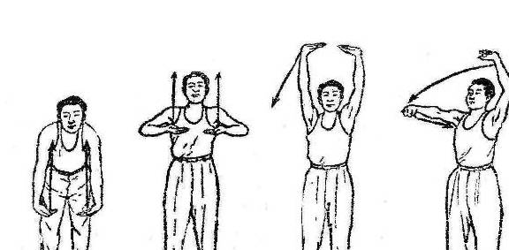 拉筋方法,易筋经,健身气功,此节的俯身运动,对于腹部具有良好的挤压按摩作用,可增强脾胃功能,防治消化系统疾病。此节还强化了腰部的锻炼,起到强壮腰肌,固肾强精的作用。其“鸣天鼓”的动作对于脑后颈部穴位进行刺激,具有醒脑、聪耳、消除大脑疲劳的功效。易筋经,气功,打躬势,拉筋方法,两脚开立,脚尖内扣。双手仰掌缓缓向左右而上,用力合抱头后部,手指弹敲小脑后片刻。配合呼吸做屈体动作;吸气时,身体挺直,目向前视,头如顶物;呼气时,直膝俯身弯腰,两手用力使头探于膝间作打躬状,勿使脚跟离地。根据体力反复8-20次。