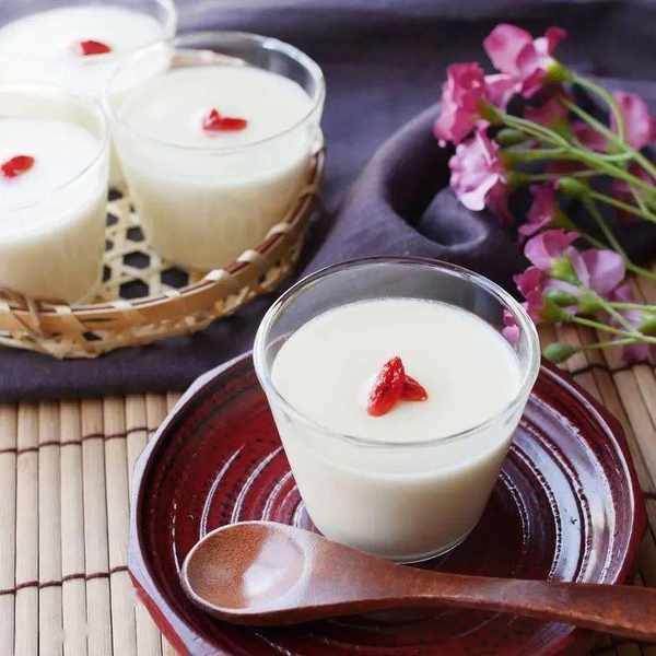 蒋杏仁捣碎,加入琼脂凝固,或者明胶,口味会有所不同。但不管怎么样,这道甜品都是很受日本女性欢迎的。